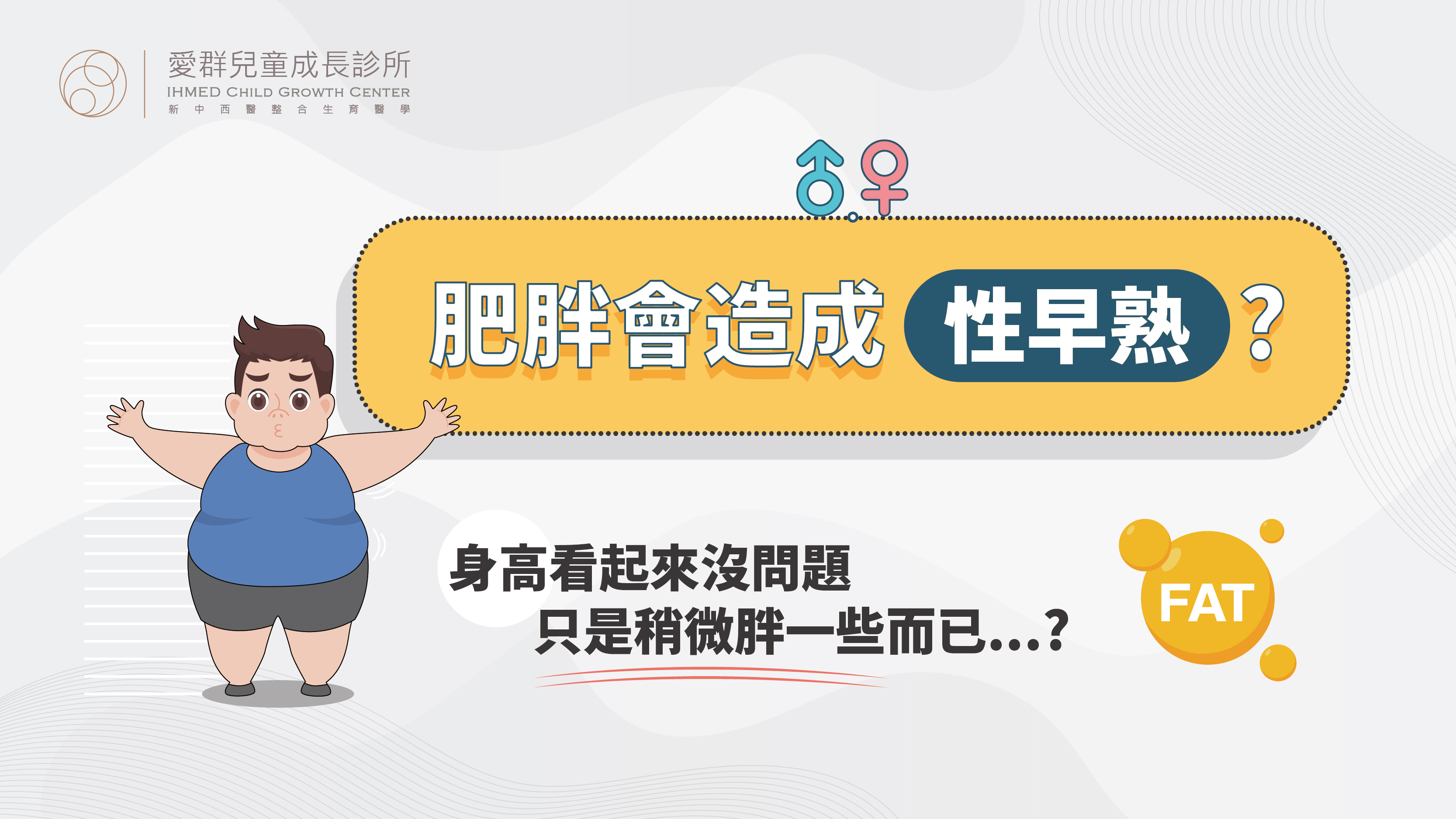 肥胖是很容易會被忽略的問題,因為大部分家長都以為孩子的 身高看起來沒問題,只是稍微胖一些而已,卻不知肥胖會造成女性荷爾蒙增加,導致骨齡超前,最後讓身高損失。當小朋友的外表發育不如人時,比較有警覺心的父母可能開始 察覺到不對勁,但孩子過高或過胖的問題卻往往被忽略。當孩子的生長曲線超過正常範圍 (百分之九十七以上),爸爸媽媽可能以為小朋友只是長得比較高、比較壯一些,甚至會為孩子長得比別人好而沾沾 自喜,其實這很可能是性早熟的徵兆。性早熟的孩子們體內性荷爾蒙會增加,荷爾蒙又會刺激生長板,導致提早閉合。換言之,長得特別高的小朋友,很有可能只是發育早別人一步,但生長停滯時間也比同 齡的小孩早。長得比較胖的小朋友,通常身高會比同年齡高,是因為女性荷爾蒙會儲存在肥胖細胞裡,造成性早熟,使其骨齡超前。