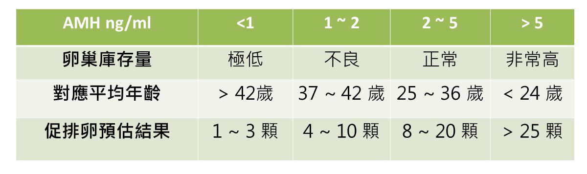 AMH 是一種由卵巢初始小濾泡中顆粒細胞共同產生的醣蛋白。在女性生育年齡時期分泌量達到最高值,而在更年期後就完全沒有製造。AMH 抽血數值對於濾泡成熟以及排卵有重要的指標功能,在臨床上可以預估生育年齡女性卵巢內卵子庫存量。