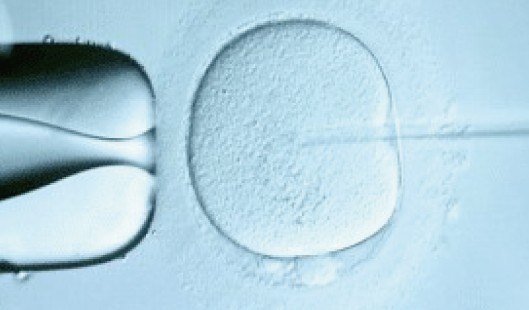 2.顯微受精(ICSI:於400倍顯微鏡下挑選一隻精蟲注入卵子中。)