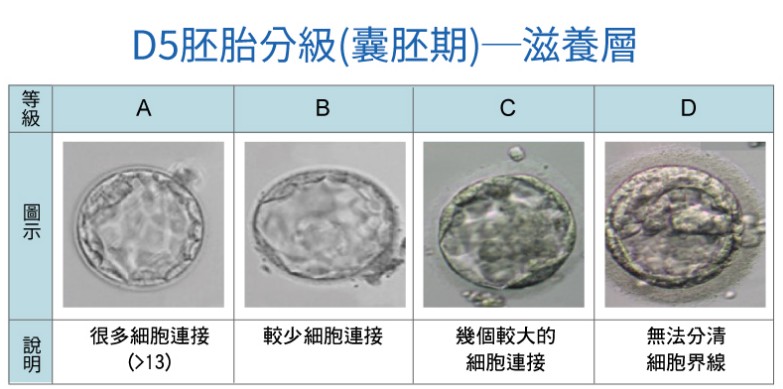*胚胎等級依據外觀評分,評分A-B胚胎為優質,評分C胚胎為一般,評分D胚胎不建議使用,等級亦不能代表染色體正常與否。