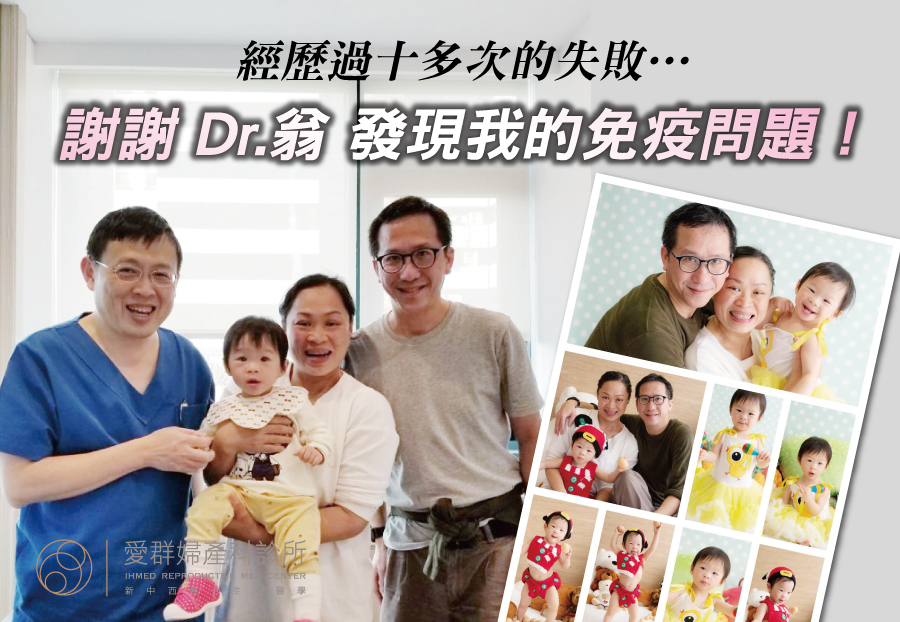 透過翁醫師的檢查及過往的經驗得出結果,我是免疫系統出現問題,翁醫師對症下藥,給我藥物及療程,我拿著藥物針藥回香港,聽從醫師的指引去做,由取卵到放胎,來來回回到台灣多次,好不容易地成功植入胚胎,亦非常擔心胚胎穩不穩,又回台灣做吊針療程,還好寶寶能留得住。