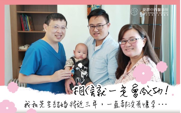 偶然間我在網路上看到有姐妺分享在”愛群”的成功經驗,心想去看看吧!於是先去掛了中醫陳醫師的診,陳醫師很有耐心的幫我把脈,跟我說要先去抽血檢查,免得一些身體狀況沒有先查明會影響後面療程的進行(後來查出來我的血栓值過高,陳醫師總是不厭其煩的在每次看診時叮囑什麼可以吃,什麼不能吃,我想,她身為女人,一定很能了解我想當媽媽的心境吧)。